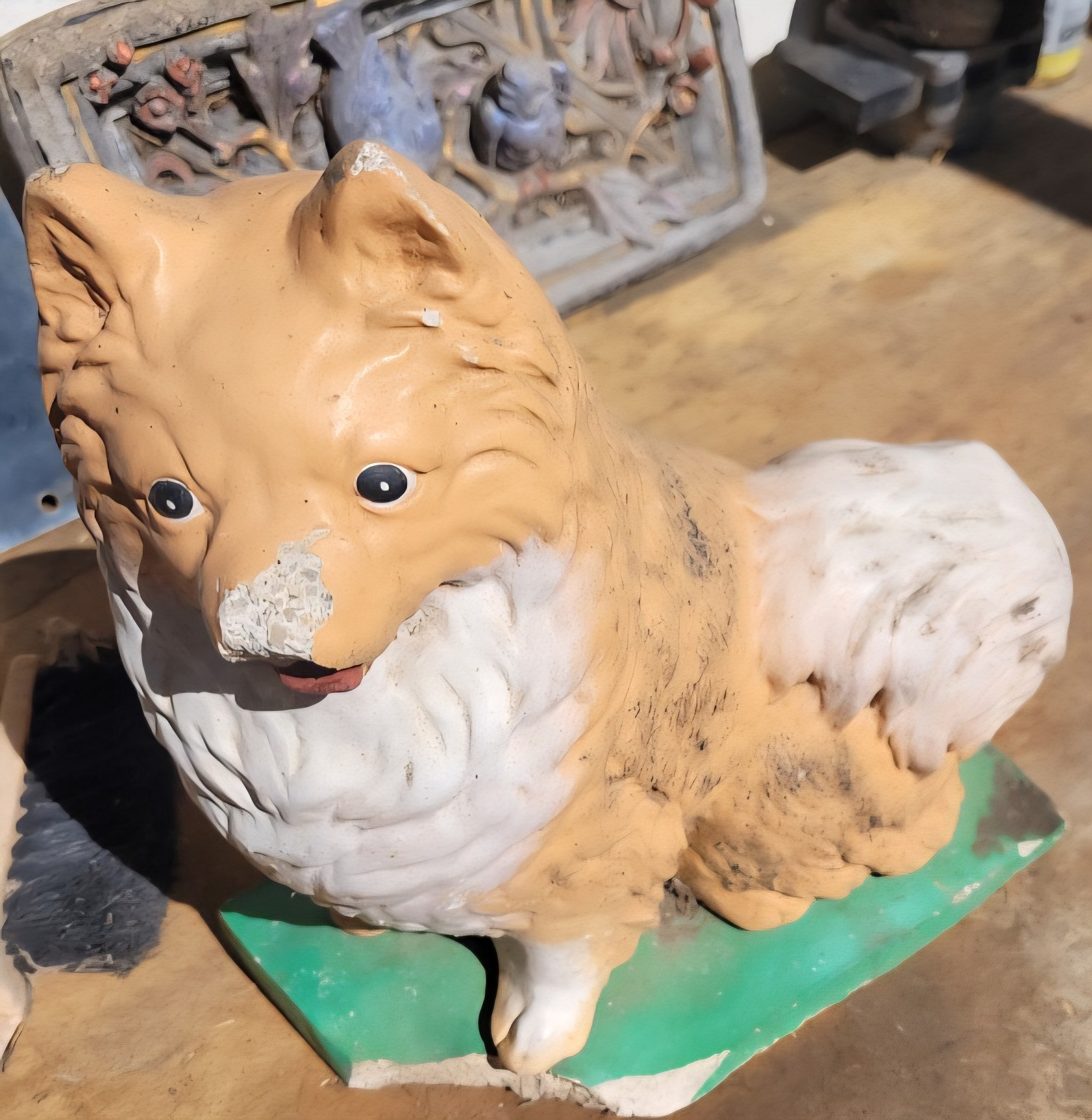 A dear friend has found this beautiful vintage concrete Pomeranian, and I’m absolutely smitten! 🧡 He may have lost a little bit of his nose over the years, but honestly… that just adds to his character and charm.
