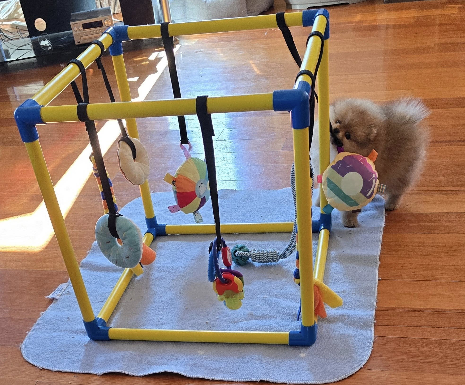 Little Miss Queenie is having the time of her life attacking her toys — full of sass, sparkle, and Pom attitude! 💖🐾